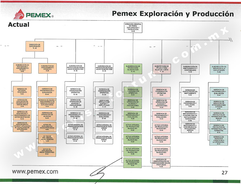 De acuerdo con el documento Modificaciones a la Estructura Orgánica Básica de Petróleos Mexicanos y sus Empresas Productivas Subsidiarias