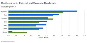 A pesar de que la política comercial de Estados Unidos seguirá siendo una fuente de riesgo a lo largo del 2026, principalmente para México, el país saldría bien librado en momentos en que se espera una mayor desaceleración de la economía regional.