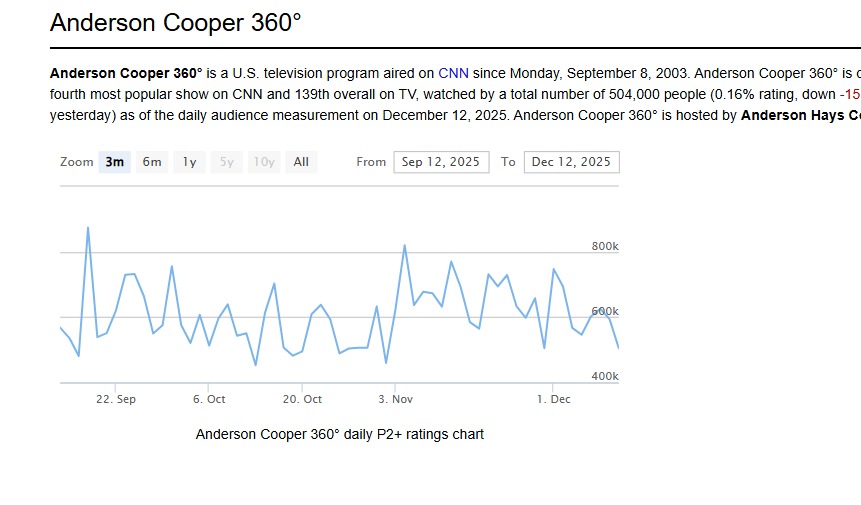 El periodista Anderson Cooper con un salario de 20 millones afianzó su permanencia en CNN como parte de una estrategia que, a juicio de los analistas, busca dar una señal de continuidad y resistencia editorial frente a la posible compra por parte de grupos vinculados a la derecha conservadora en Estados Unidos como la familia Ellison, de acuerdo con un reporte de la revista Variety. Los niveles de audiencia de Cooper son superiores a las 500 mil personas.