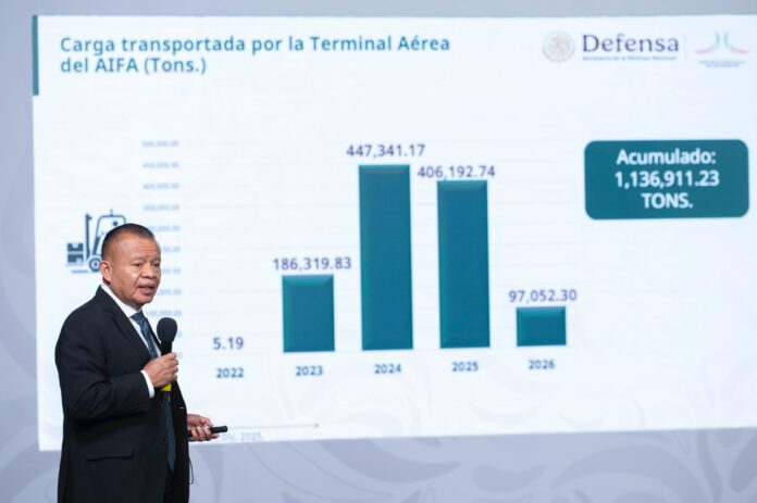 En el sector de carga, el aeropuerto ha movilizado más de un millón 136 mil toneladas acumuladas hasta diciembre de 2025, con predominio de operaciones de comercio exterior. Actualmente operan 49 aerolíneas cargueras, incluidas 13 de origen estadounidense.