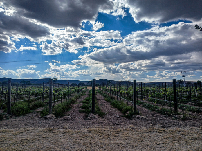 El viaje hacia los viñedos de Aguascalientes comenzó bajo la mirada enigmática del Cerro de la Mesa, levantado en tierras de Jalisco, pero visible como guardián en el horizonte del camino. Así, la carretera se abría entre colinas y cielos despejados, y lo que dominaba el ambiente no era el aire fresco, sino un sol que caía a plomo, un calor que se adhería a la tierra y marcaba su pulso. En medio de esa intensidad, los viñedos surgieron como oasis, como tregua luminosa que detenía el tiempo y dejaba escuchar el murmullo de la vid en un territorio donde sequedad y vida se enfrentan, pero también se abrazan.